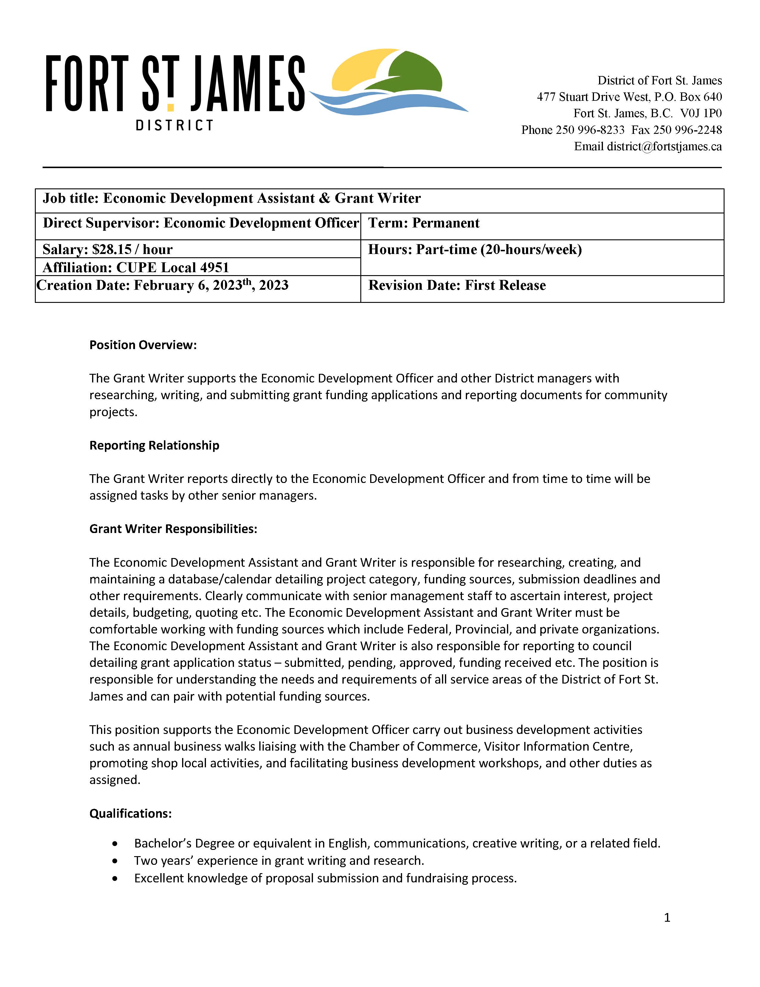 Economic Development Assistant & Grant Writer