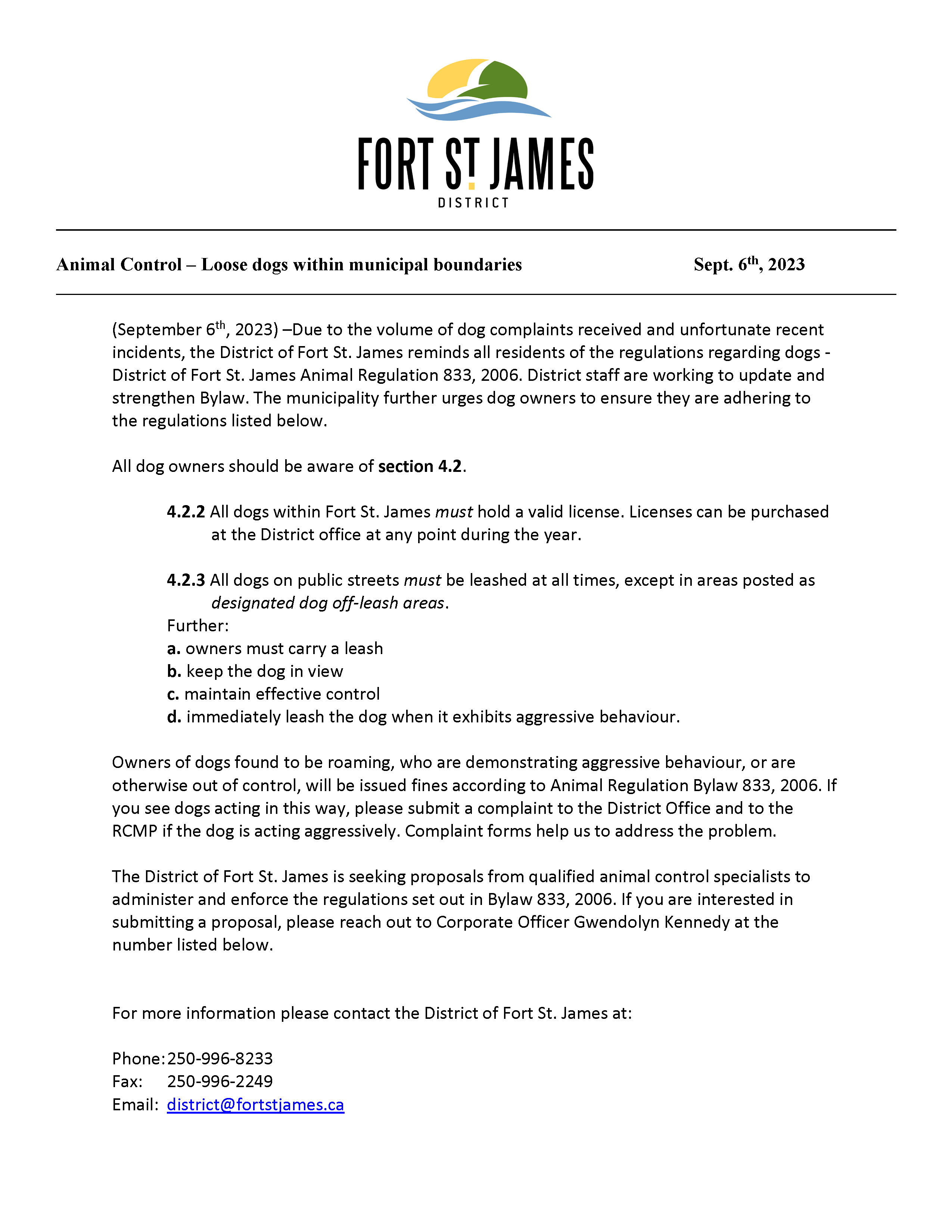 Roaming Dogs Animal Regulation Bylaw 833, 2006